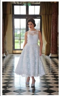This lovely short blue with lace overlay wedding dress Was £505 NOW £50